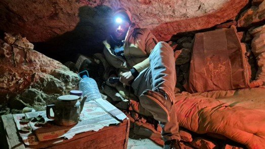 Mineur dans un puits informel de vanadinite, Mibladen (Midelt), décembre 2024, @Dessertine